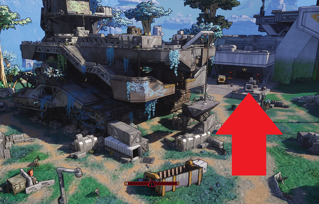 With the Borderlands 4 roaming pasture canister in hand, return to the crawler. Slip under the initial staircase to access the lower level, then climb the stairs. At the top, turn and ascend another staircase, circling the platform’s edge before climbing a third set of stairs. This path is critical for navigating the Borderlands 4 crawler roaming pasture structure efficiently.